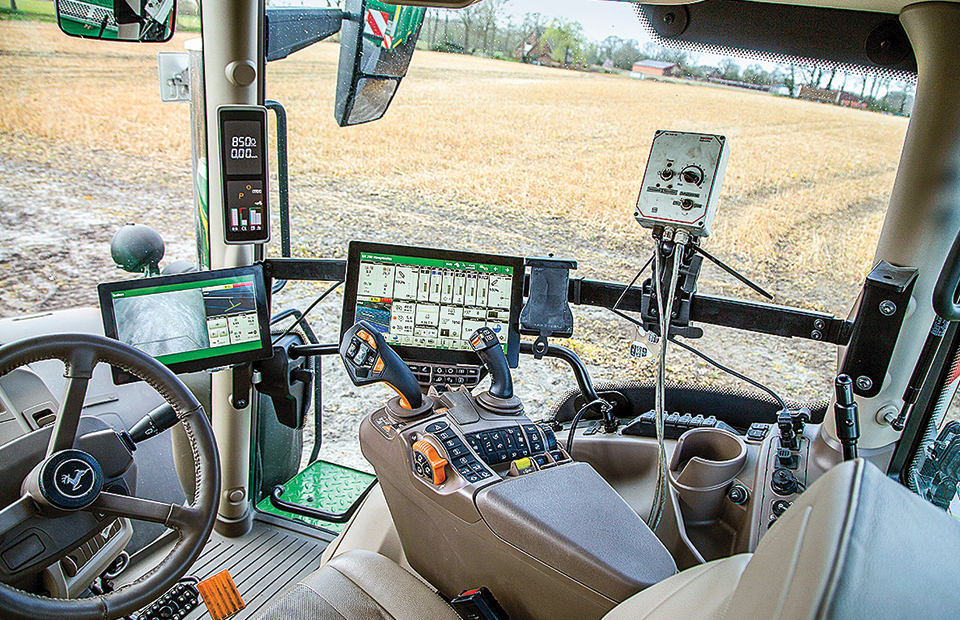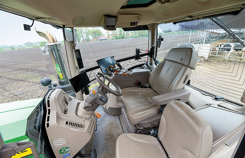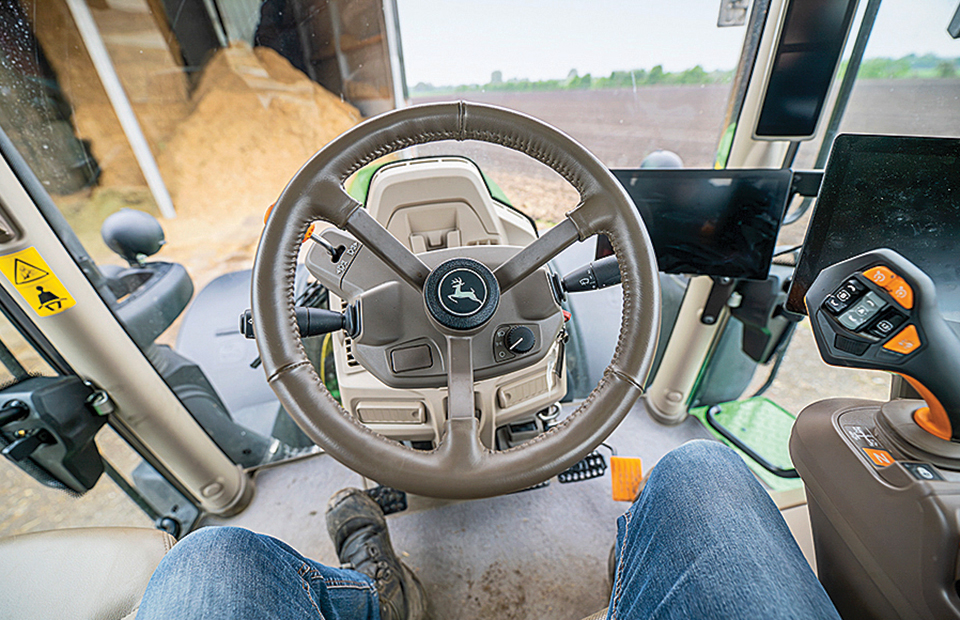 Πηγαίνοντας στην καµπίνα, η άνεση είναι αισθητή ακόµα και σε χειριστές που δεν είναι εξοικειωµένοι µε τους ελκυστήρες της John Deere. Η καµπίνα του 6R συνεχίζει να αποτελεί σηµείο αναφοράς.