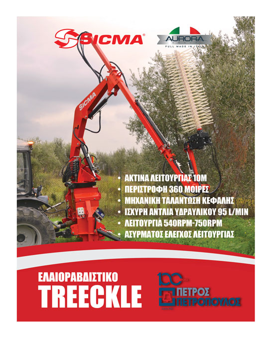 Η SICMA, µε εµπειρία δεκαετιών στην κατασκευή γεωργικών µηχανηµάτων, προσφέρει καινοτόµες λύσεις που καλλιεργούν το µέλλον της γης σας.Το SICMA TREECKLE προσφέρεται από την εταιρεία ΠΕΤΡΟΣ ΠΕΤΡΟΠΟΥΛΟΣ ΑΕΒΕ.