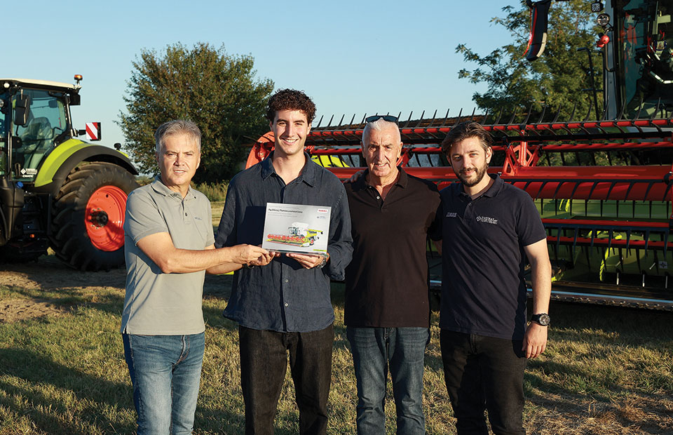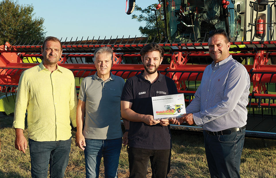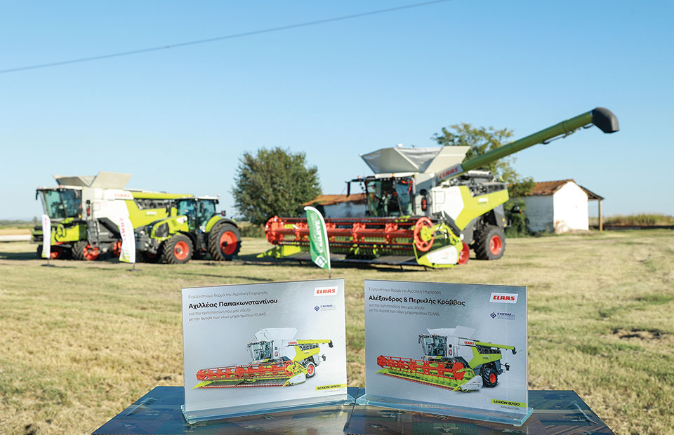 Παρουσία υψηλόβαθµων στελεχών της Claas από Ιταλία, Ισπανία και Γερµανία, ο Γιώργος Χίγκας τίµησε τον Αχιλλέα Παπακωνσταντίνου, ιδιοκτήτη, πλέον, της πρώτης Lexion 8900 στη χώρα µας, αλλά και τα αδέλφια Περικλή και Αλέξανδρο Κράββα, οι οποίοι 5 χρόνια πριν ήταν οι πρώτοι που είχαν φέρει στην Ελλάδα τη Lexion 8700.
