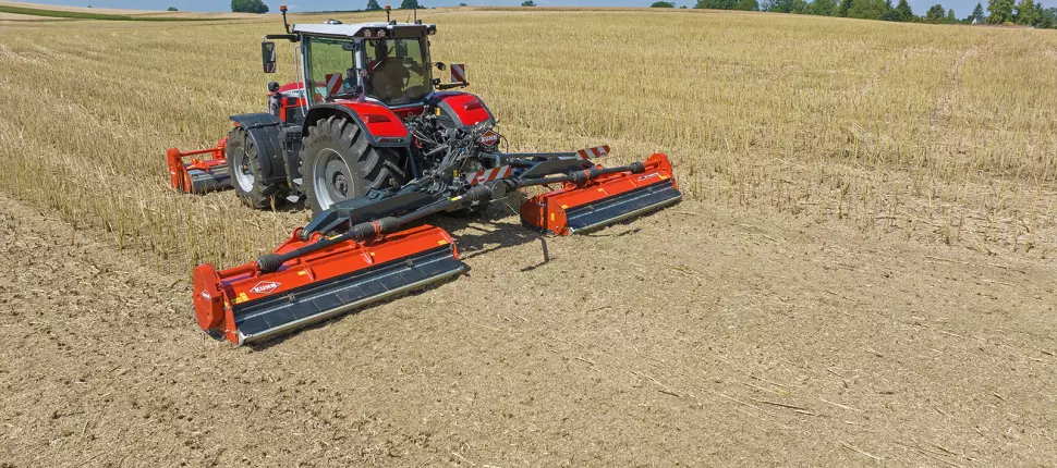Χάρη σε ένα νέο κεντρικό πλαίσιο με πνευματική ανάρτηση LIFT-CONTROL οι νέοι θρυμματιστές της Kuhn είναι πολύ σταθεροί με τον κύλινδρο του μηχανήματος να δέχεται μικρότερες πιέσεις. Παράλληλα, η ανάρτηση διασφαλίζει την προσαρμογή του μηχανήματος στις συνθήκες εργασίας. Επιπλέον, μηχανικά τμήματα ασφαλείας προστατεύουν το μηχάνημα από τυχών εμπόδια στο χωράφι.